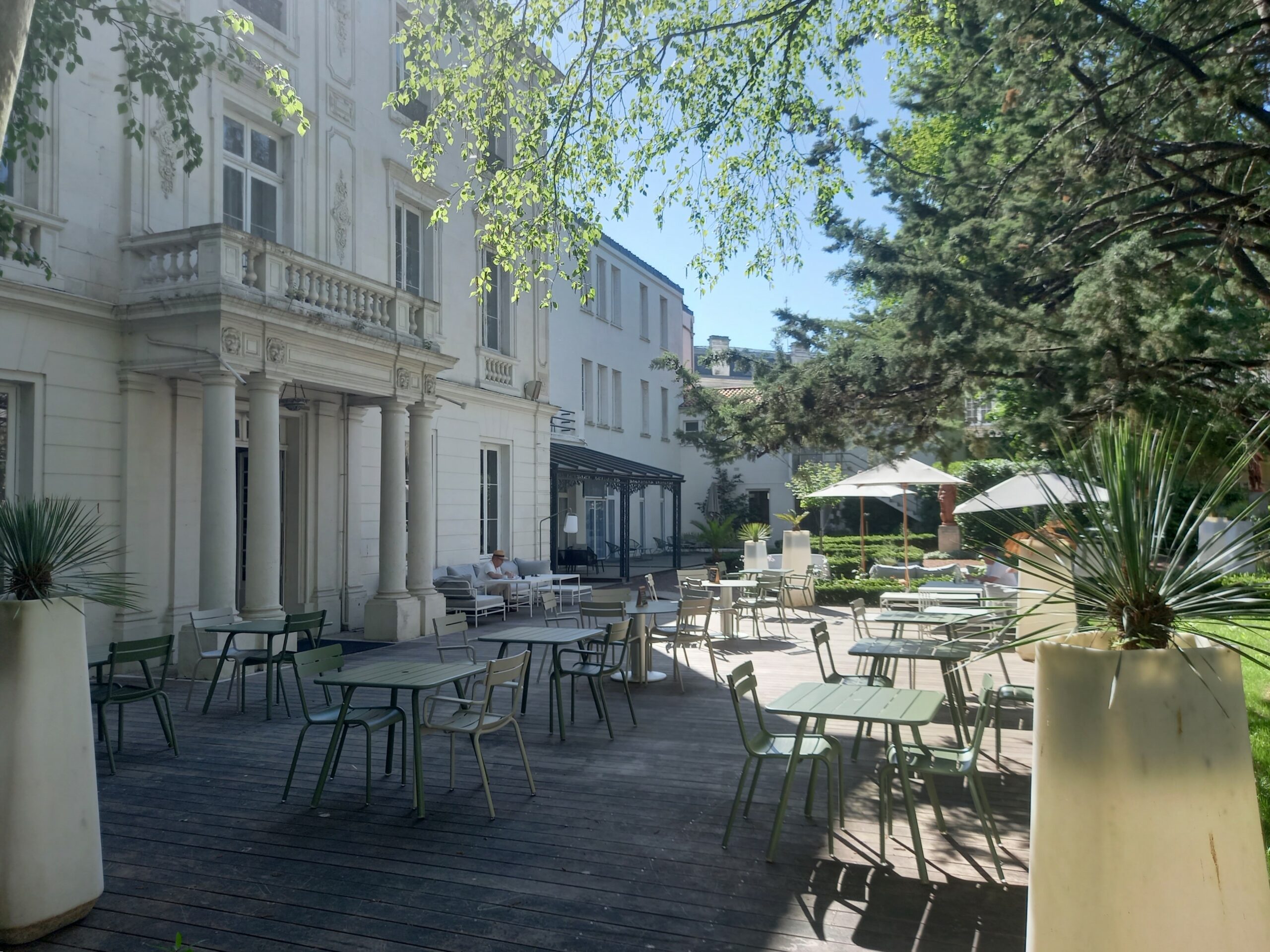 ♥ Coté patio : Ambiance de sérénité avec une luminosité feutrée. Chambres qui donnent sur un petit patio fleuri, en contrebas, ou est servi le petit déjeuner en saison.