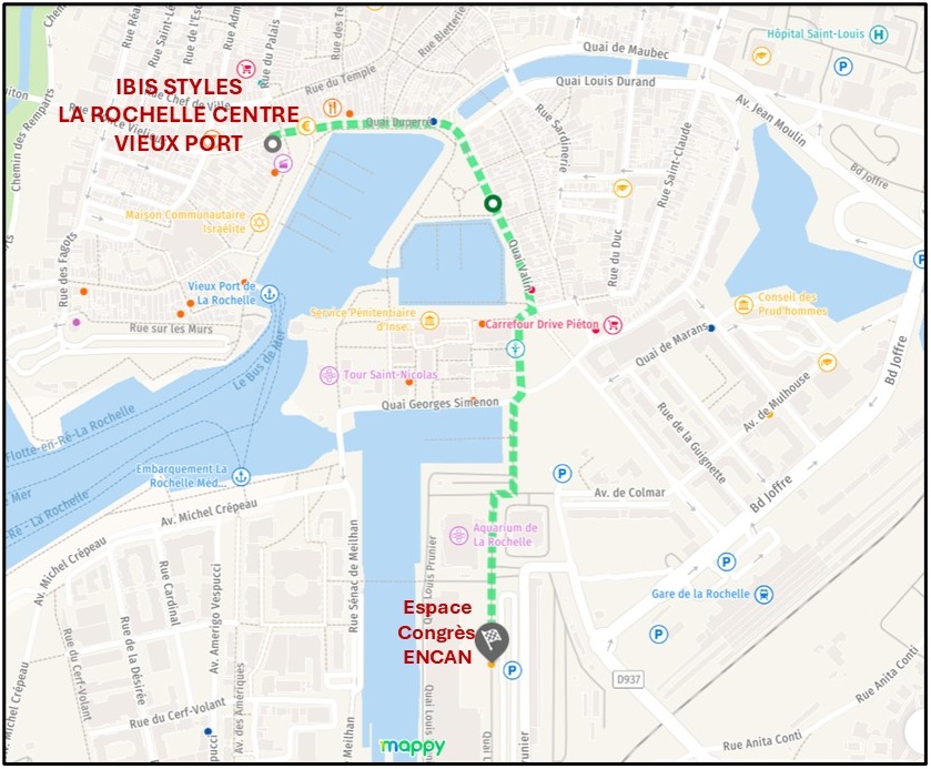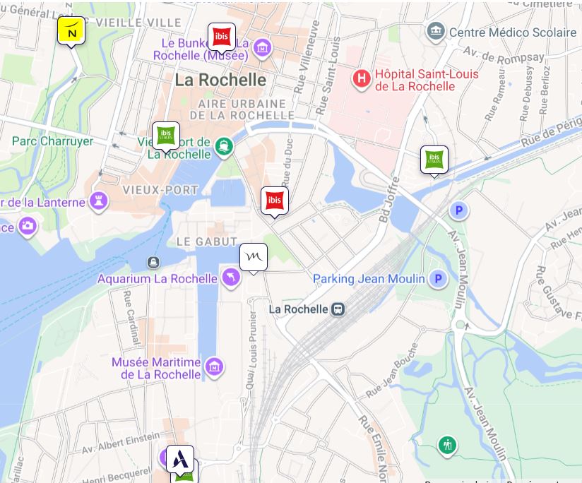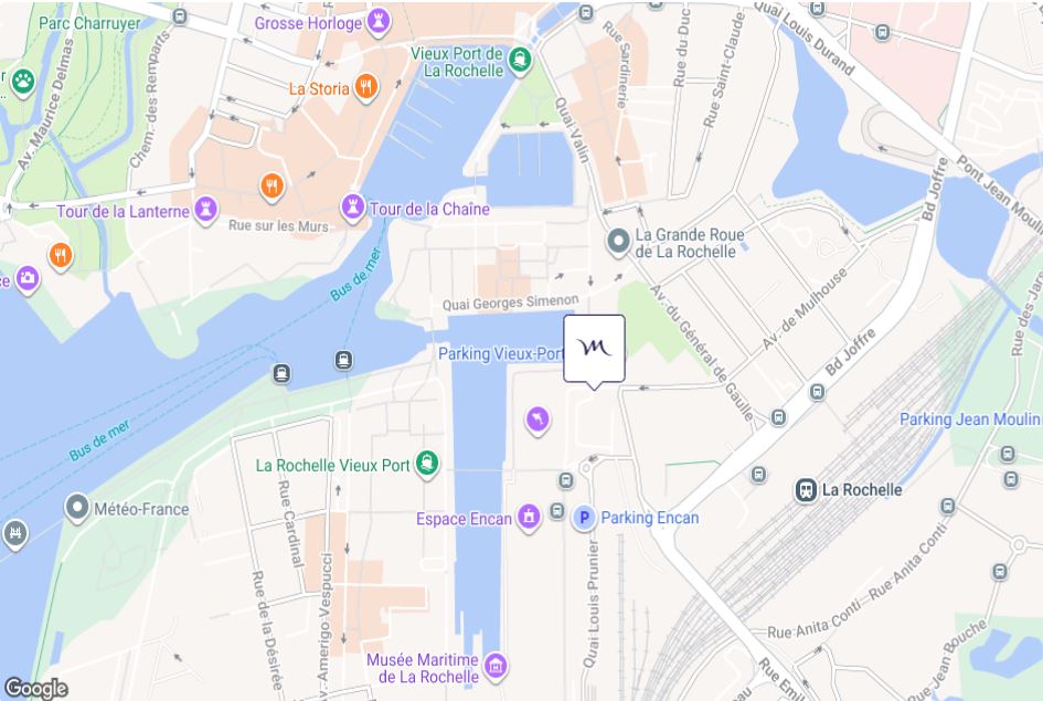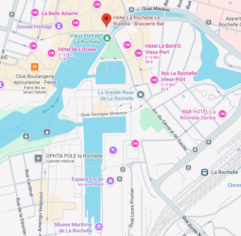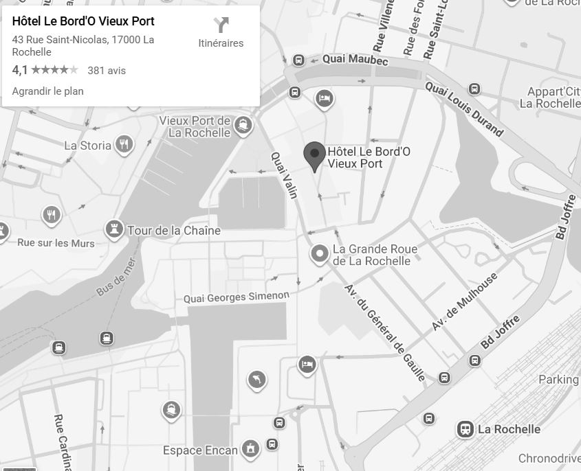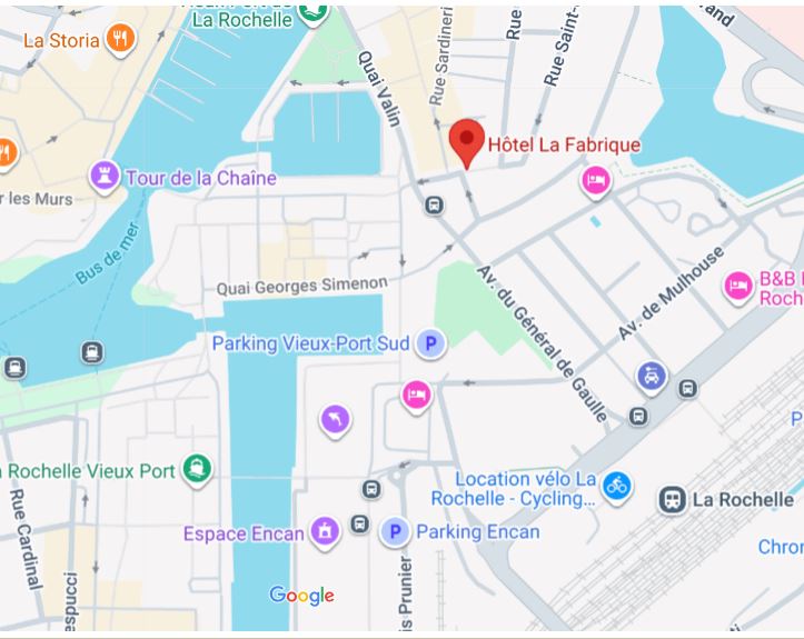♥ L’Hôtel est situé 3 rue de la Monnaie 17000 LA ROCHELLE, à quinzaine de minutes à pied de l’Espace ENCAN (Congrès CDF) en passant par le vieux port.