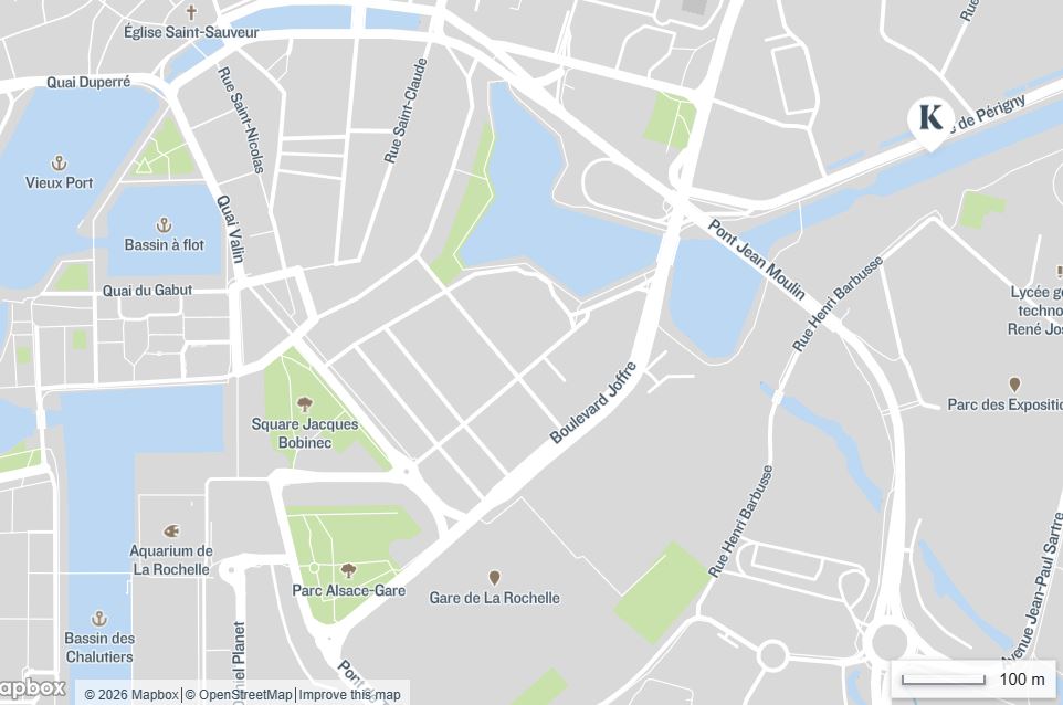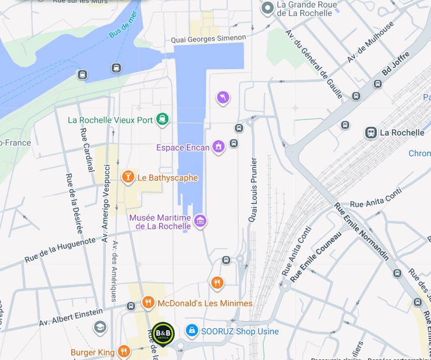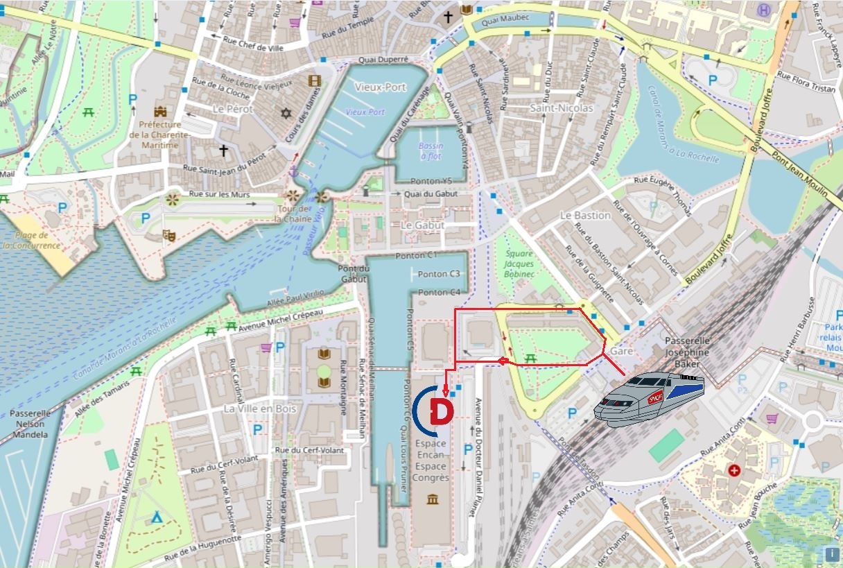 Gare La Rochelle Ville → 6 min à pied de l’Espace Encan Centre de Congrès CDF. Environ 300 m.