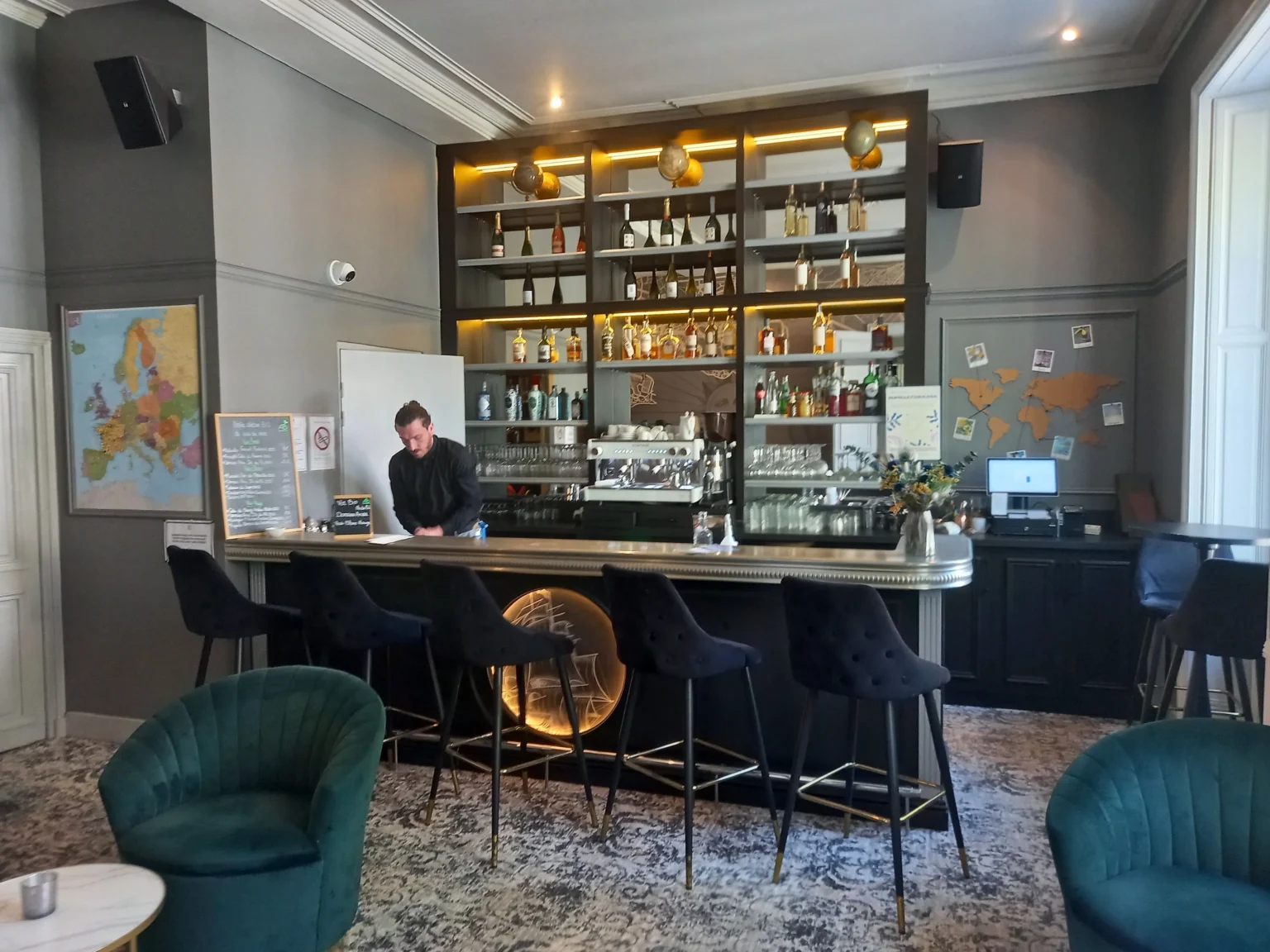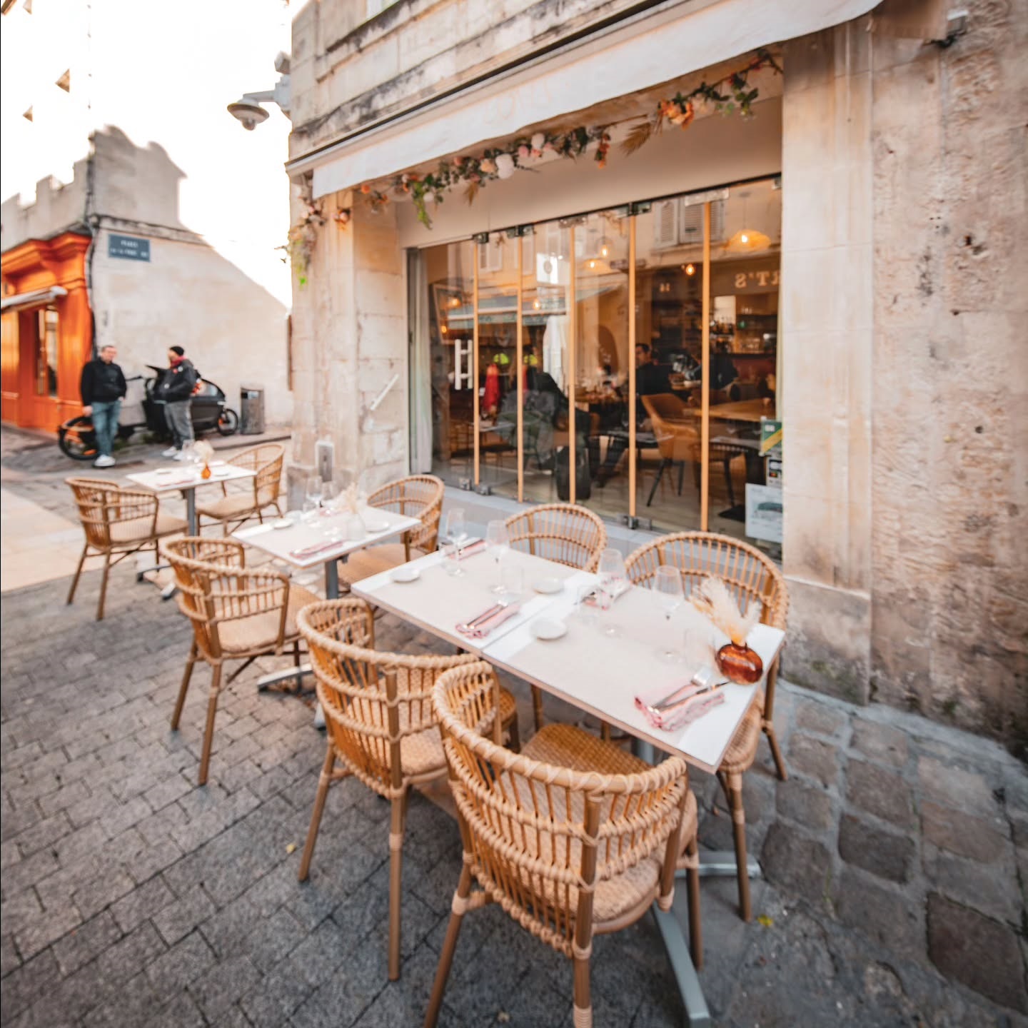 Il est situé au 19 rue Saint Nicolas 17000 La Rochelle, et dispose, pour les beaux jours, d’une terrasse rue saint Nicolas ainsi que sur la place de la fourche. Jusqu’à 28 personnes.